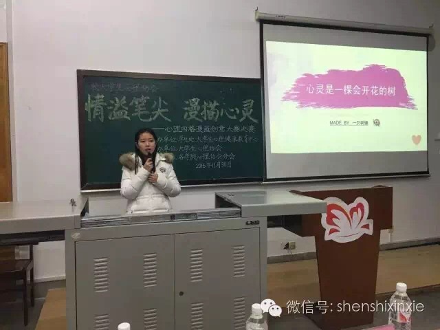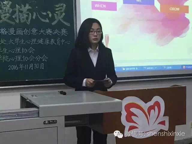 11月30日17:30至19:00,2016年“10•10”世界精神卫生日宣传活动之“情溢笔尖 漫描心灵”心理四格漫画创意大赛决赛在博文楼403教室顺利举行。