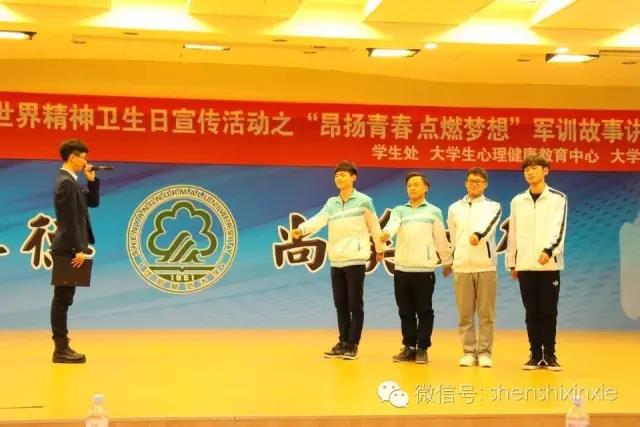 12月1日17:30至19:10,2016年“10.10”世界精神卫生日宣传活动之“昂扬青春 点燃梦想”军训故事讲述大赛决赛在图书馆五楼报告厅成功举办。