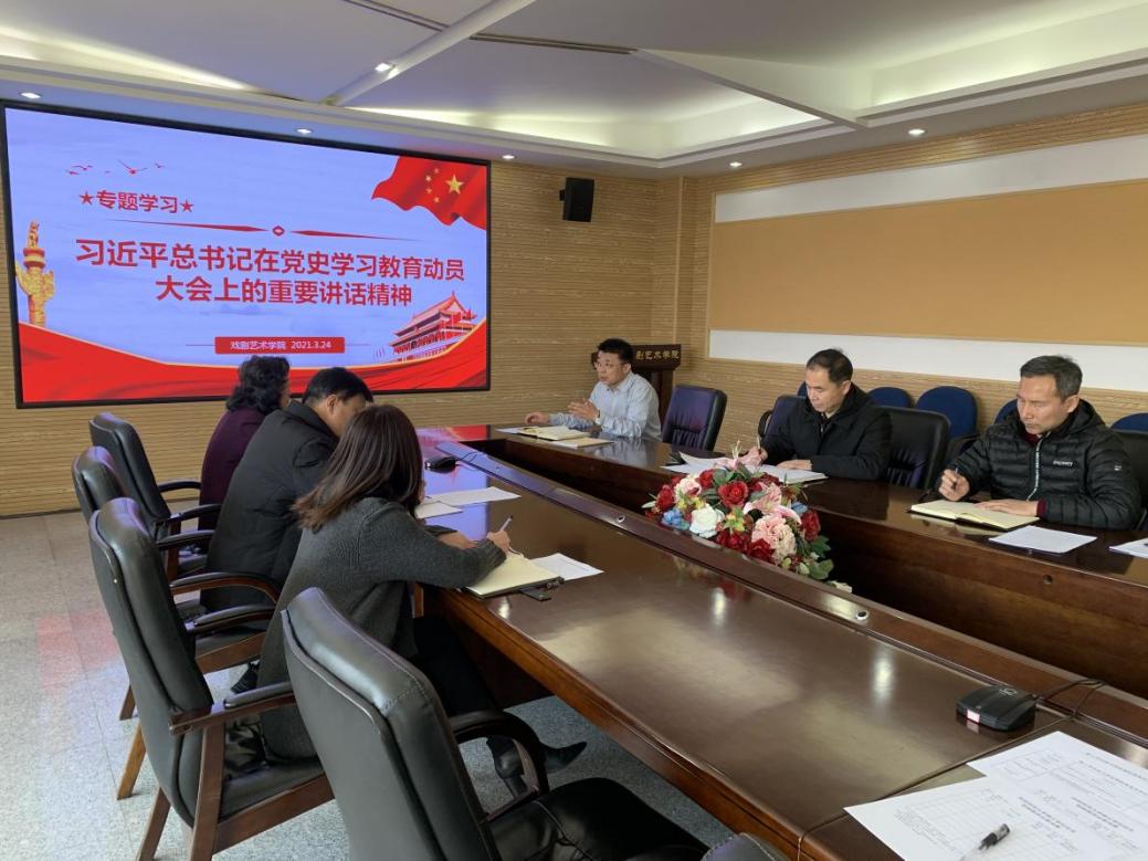 会上,郭书记带领班子成员认真研读了《习近平总书记在党史学习教育动员大会上的讲话》学习材料。大家一致认为,我们站在两个一百年历史交汇点上,要充分认识开展党史学习教育的重大意义,做到学史明理、学史增信、学史崇德、学史力行,切实增强“四个意识”、坚定“四个自信”、做到“两个维护”,不忘立德树人初心,牢记为党育人、为国育才使命。班子成员在集体学习外要加强自主学习,要按照“学党史、悟思想、办实事、开新局”的总要求,统筹抓好公司党史学习教育工作,把“四史”学习教育作为当前和今后一个时期内的重要政治任务抓牢抓实。要充分发挥公司优势,带领全院师生以优异成绩迎接建党一百周年。