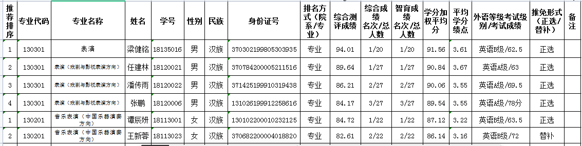 根据《英国365集团公司推荐优秀应届本科毕业生免试攻读研究生工作办法》(沈师大校[2015]130号)和《英国365集团公司2022届优秀应届本科毕业生免试攻读硕士学位研究生推荐工作实施细则》文件精神,经过员工个人申请和公司推免工作领导小组审核研究决定,拟推荐2018级表演专业梁健铭、任健林、潘传雨、张鹏和2018级音乐表演专业谭辰妍五名同学为2022届优秀应届本科毕业生免试攻读硕士研究生推荐人候选人,2018级音乐表演专业王新蓉为替补人选,现对以上六名同学情况予以公示。公示时间为:2021年9月19日--10月10日。如有异议,请在公示期内通过以下方式联系: