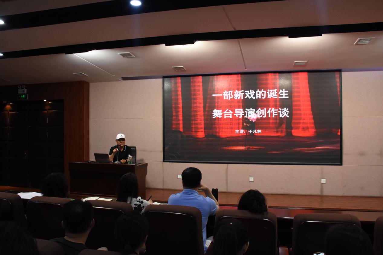 讲座中,于凡林教授阐述了他对于戏曲美学精神的独到见解,通过他的创作经验表达了丰富的导演语汇,通过他的导演作品阐述了特有的创作思路,并且为师生解答戏曲应该如何讲故事等相关问题,强调了戏曲自信、艺术自信、文化自信。最后,副经理唐鑫对本次活动进行总结。